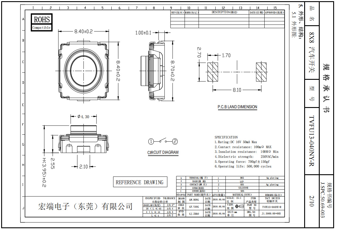接触电阻:100mΩ Max