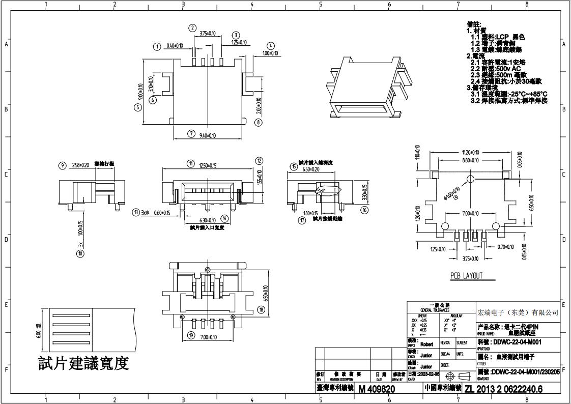 品名:1.25间距血糖仪试纸座 4P 退卡式 DDWC-2204-M001