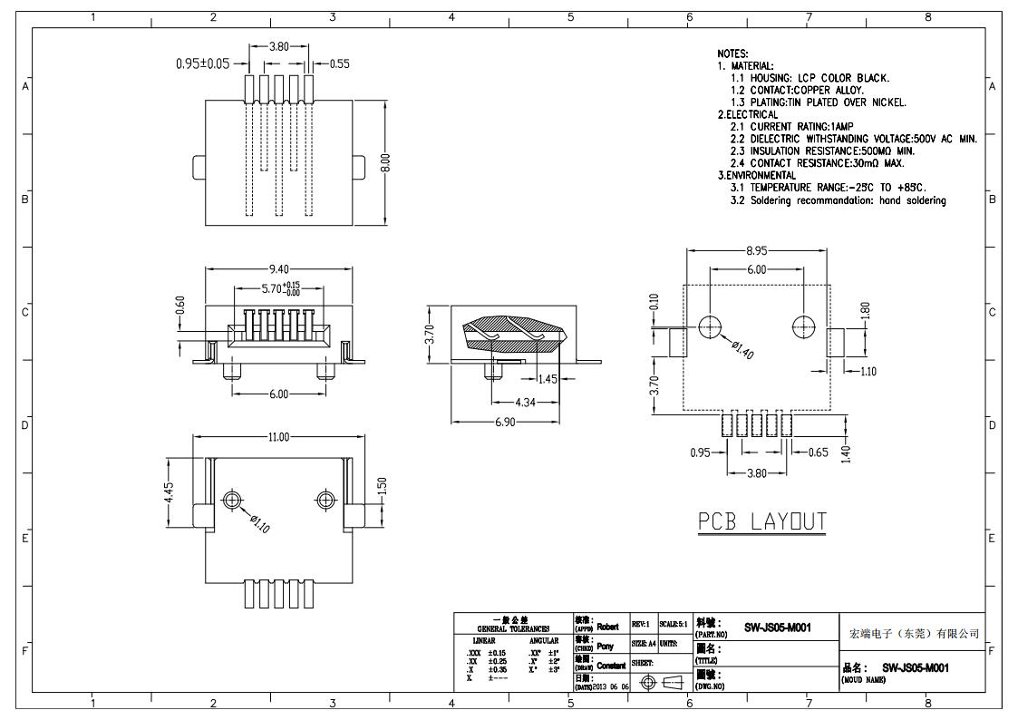 描述:0.95mm间距 血糖仪试纸座 5P SW-JS05-M001 无退条功能