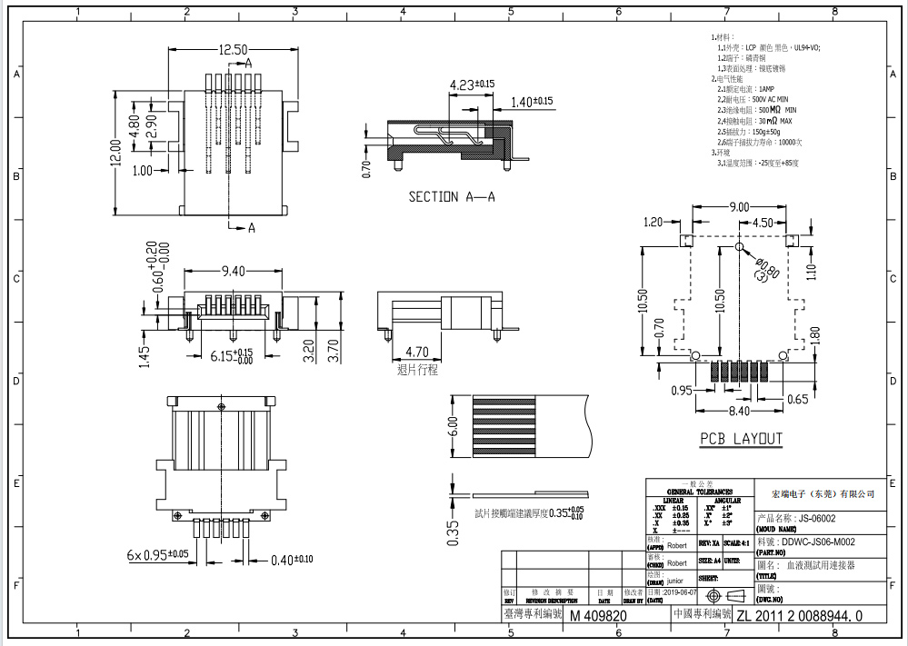 描述:0.95mm间距 血糖仪连接器 退卡式 6P 可退条功能